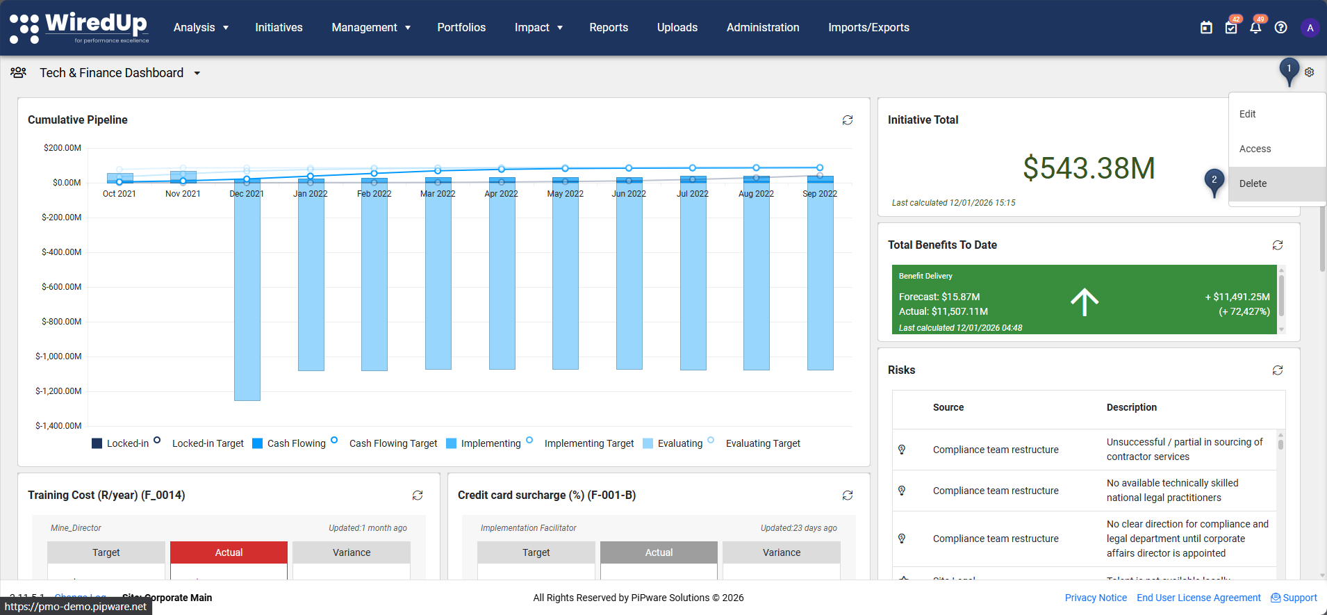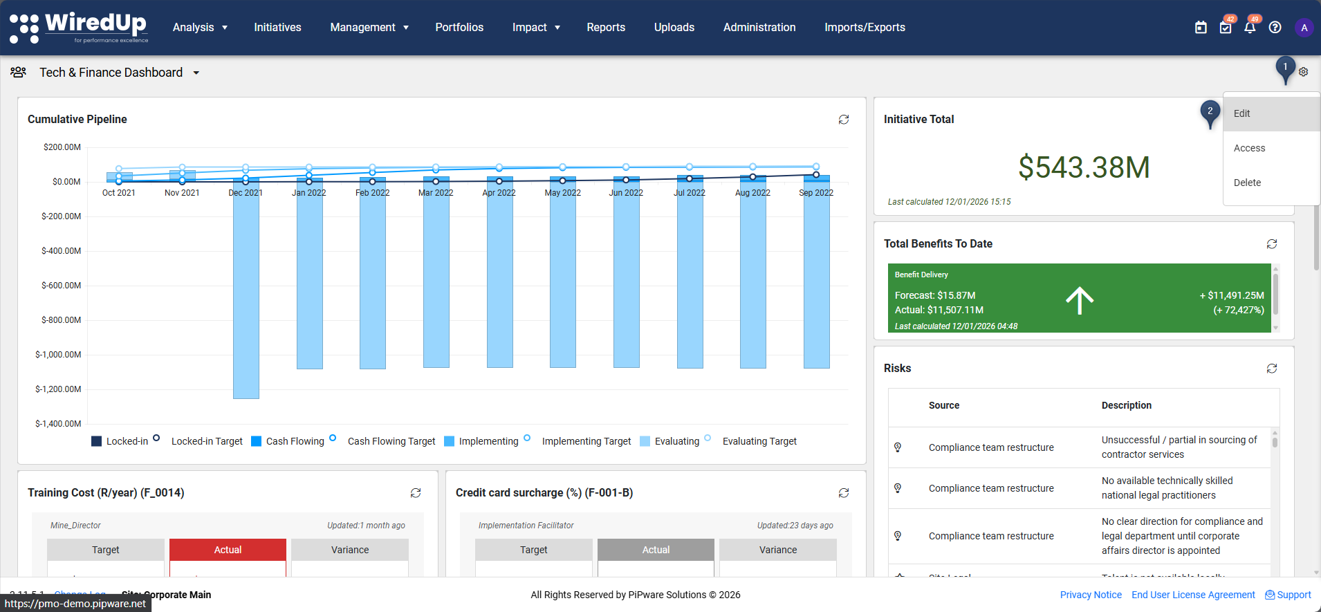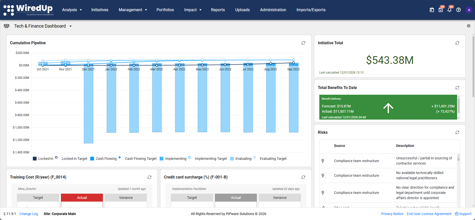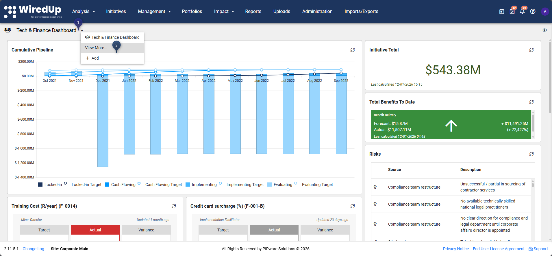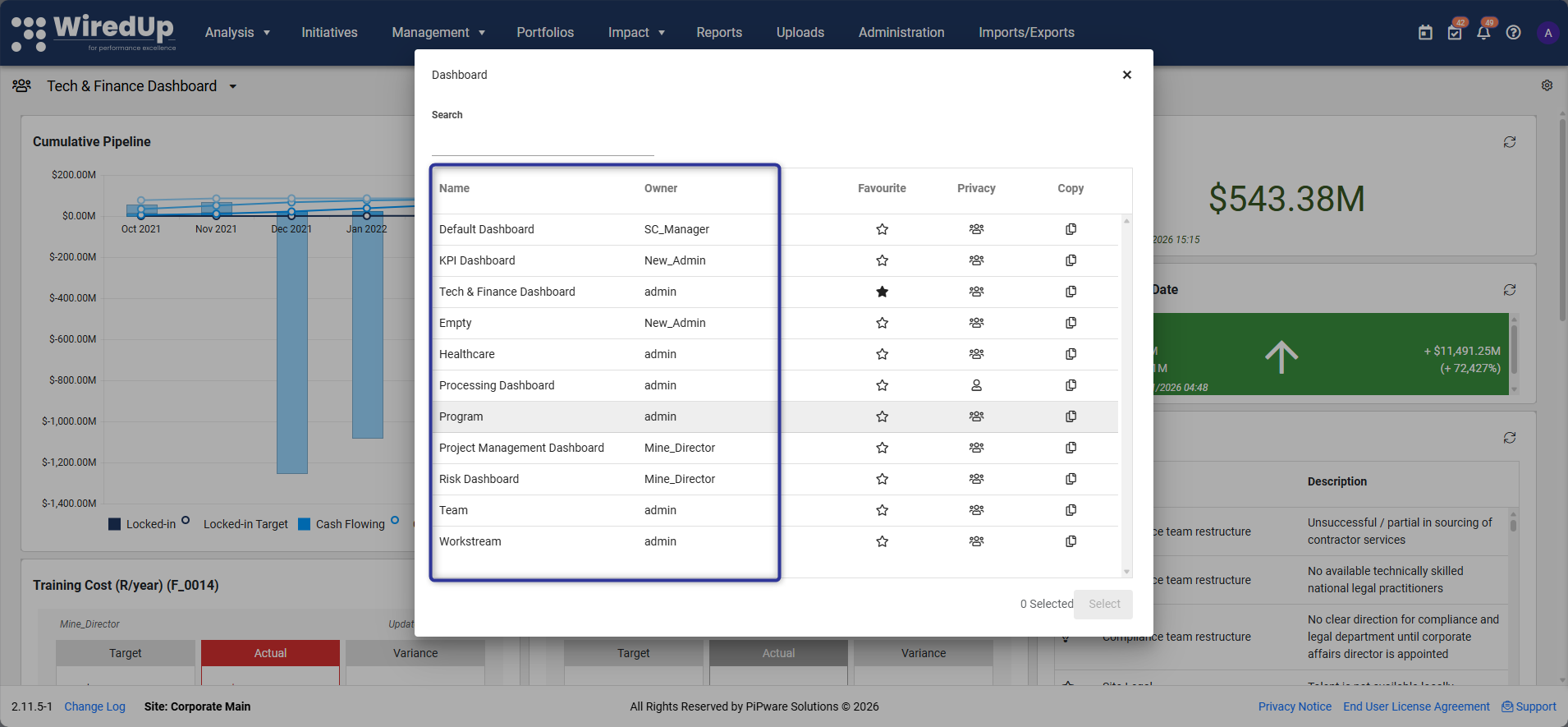 - Upon logging in to WiredUp, you will automatically land on your default dashboard or the dashboard marked as favorite (if one has been selected)
