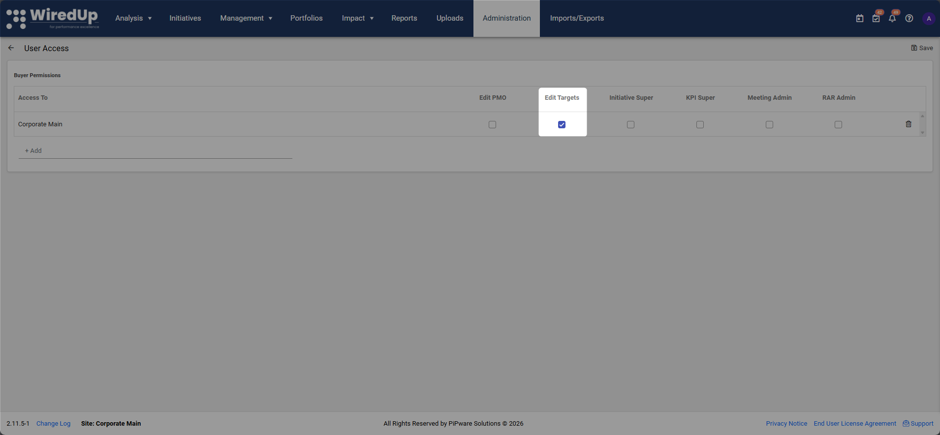 Users require the Edit Targets user access permission in order to be able to edit pipeline targets.