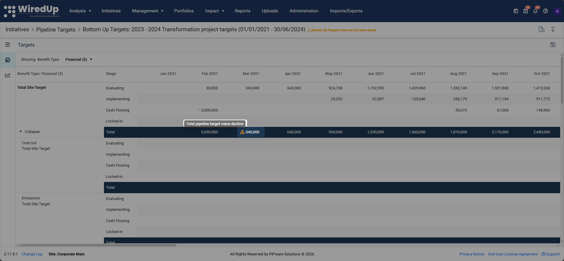 Pipeline Targets in Cumulative Benefits Report