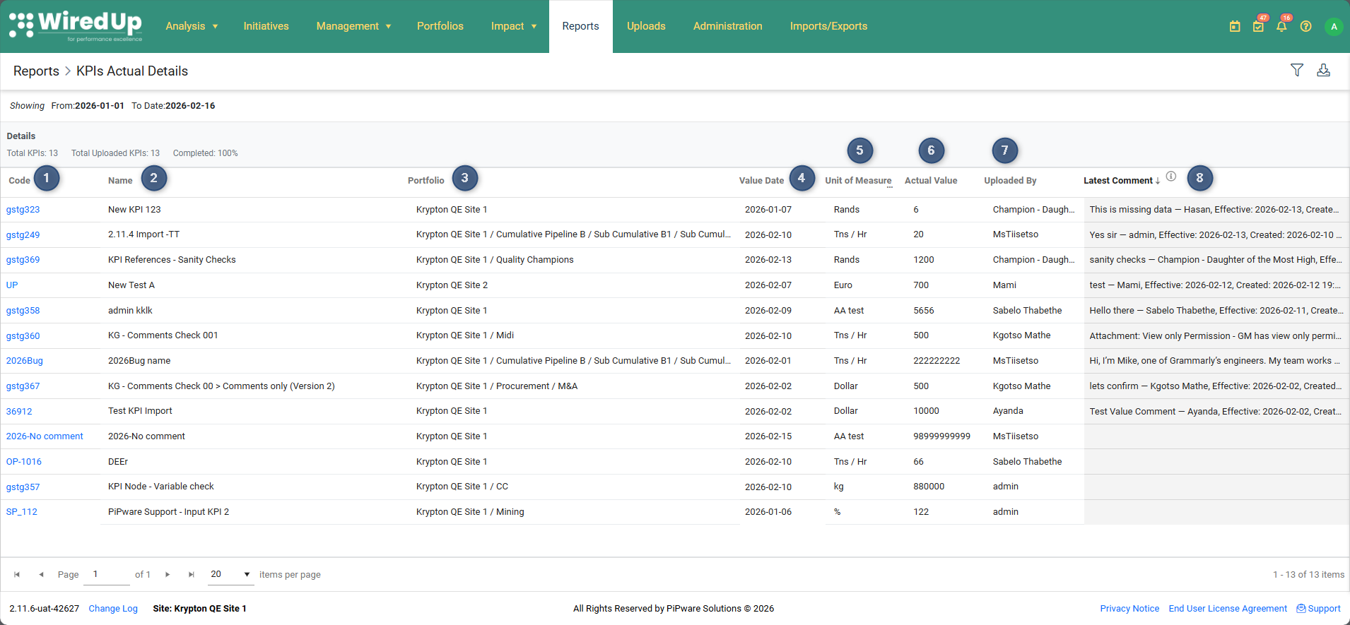 - Uploaded By: The name of the user who uploaded or captured the actual value