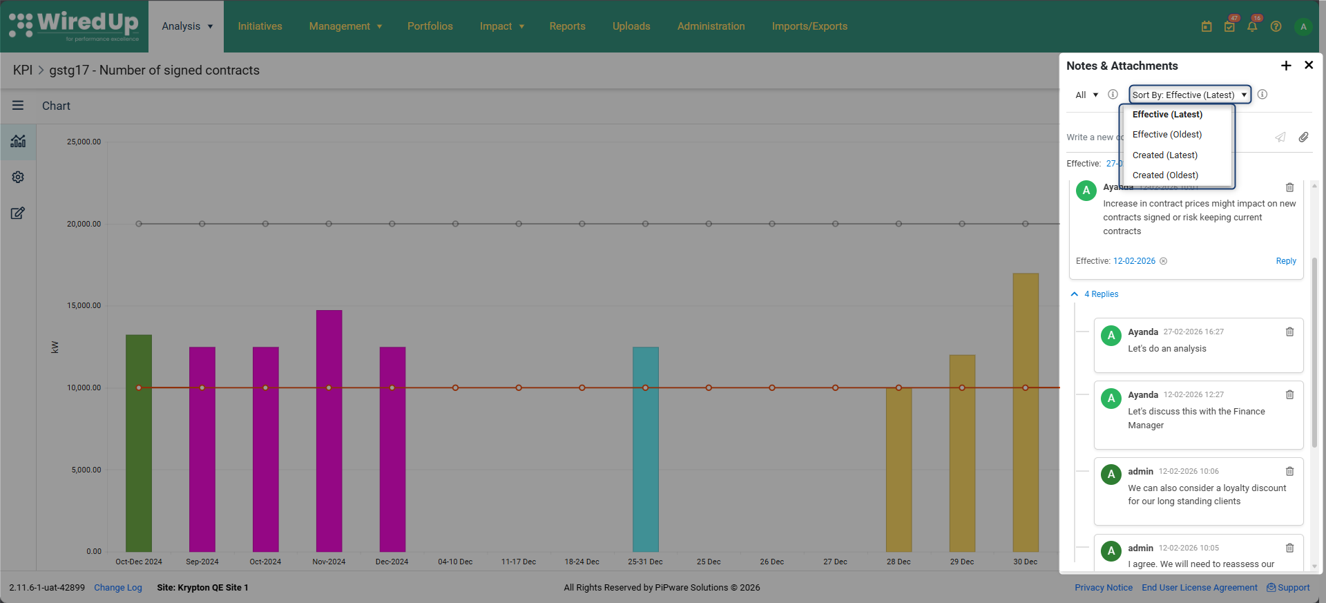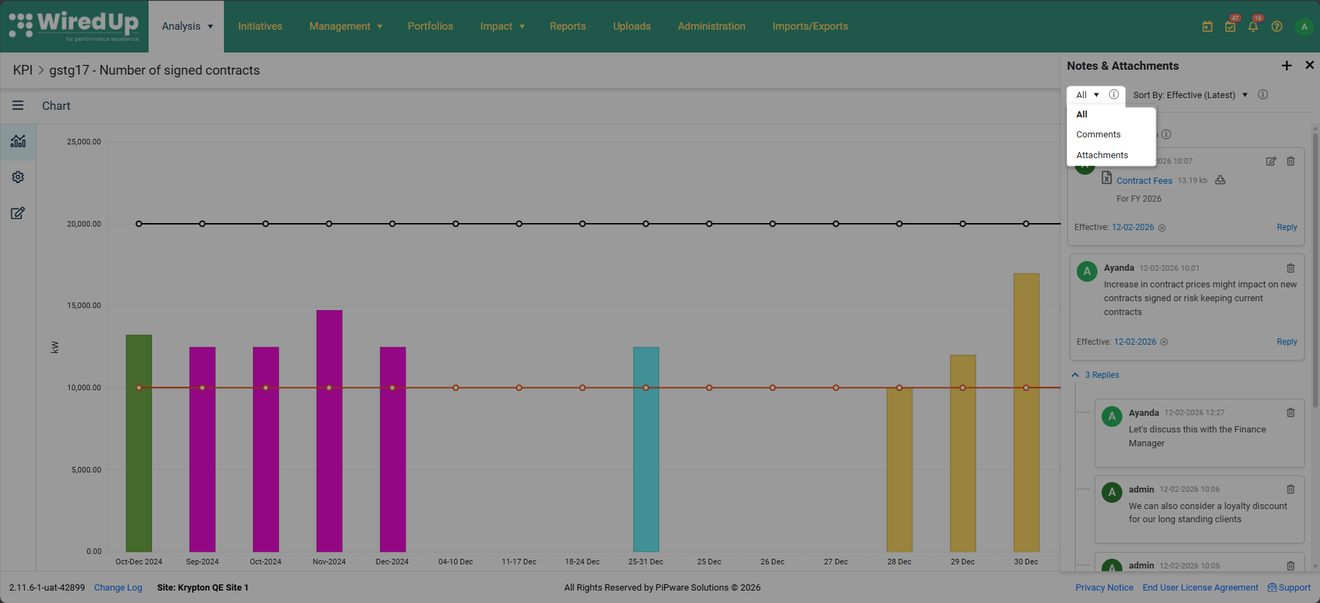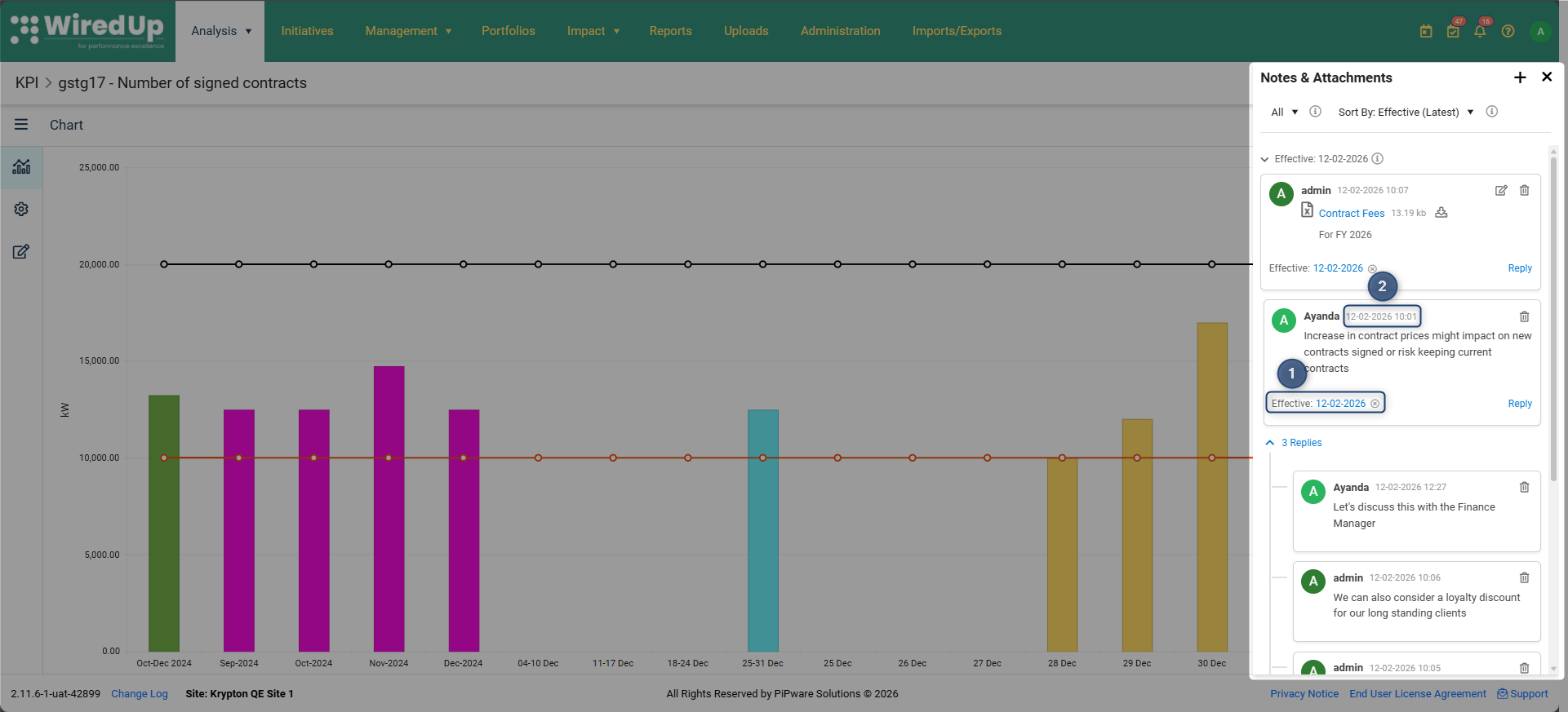 Ya sea para documentar revisiones trimestrales del negocio, explicar variaciones o proporcionar contexto adicional a las partes interesadas, la función de notas y archivos adjuntos de KPI garantiza que se capturen y conserven en el sistema información valiosa.