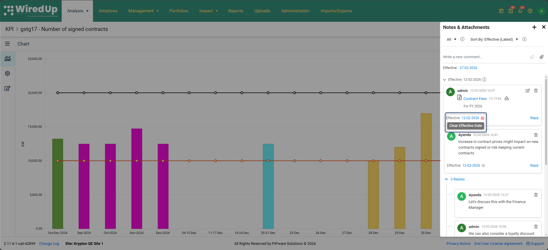Esto garantiza que los comentarios se conserven en los informes exportados y se puedan compartir con las partes interesadas que no tengan acceso directo al sistema WiredUp.