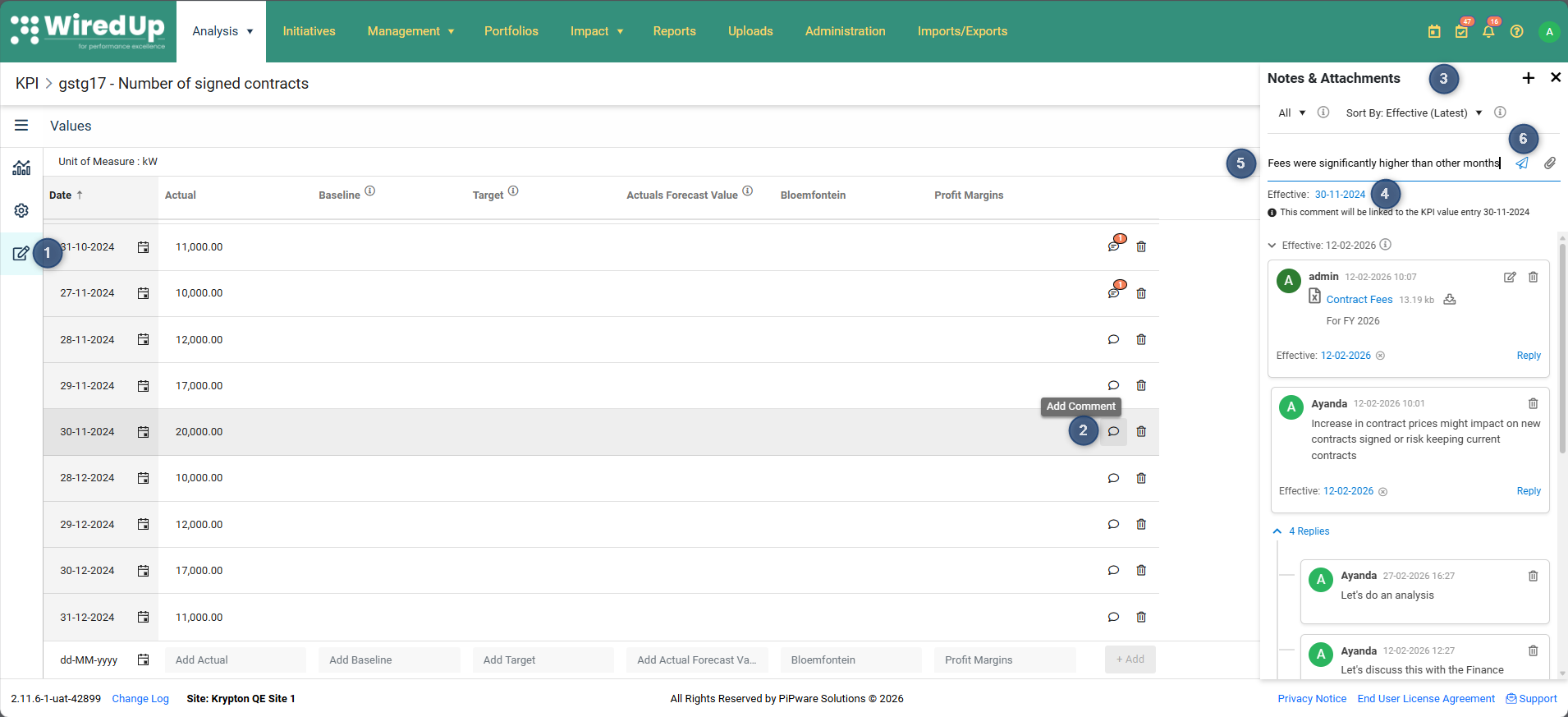 - Añadir comentarios directamente desde las entradas de valores de KPI para agilizar la documentación de los datos.